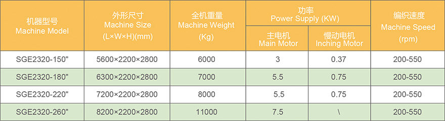 產(chǎn)品簡介:用于編織各種蚊帳網(wǎng)、化纖網(wǎng)眼布、特殊面料、發(fā)泡網(wǎng)、醫(yī)學(xué)用網(wǎng)等。采用開式凸輪傳動機(jī)構(gòu)或油浸式偏心連桿機(jī)構(gòu),電子送經(jīng)、電子牽拉、漲力動態(tài)檢測。主要技術(shù)參數(shù)1、針型:舌針或嵌舌針2、機(jī)號:E6、E9、E12、E14、E16、E18、E20、E223、梳櫛數(shù):2-5把4…
