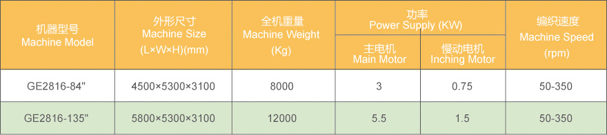 產品簡介:用于編織各種雙針床無結網、體育網、安全網。采用油浸式偏心連桿機構、配備電子送經、電子牽拉或者電子橫移。主要技術參數1、針型:舌針2、機號:E6、E9、E123、工作幅寬: 84" (2134mm) , 135" (3429mm) 4、梳櫛數:6-8把5、送經形式:電子…